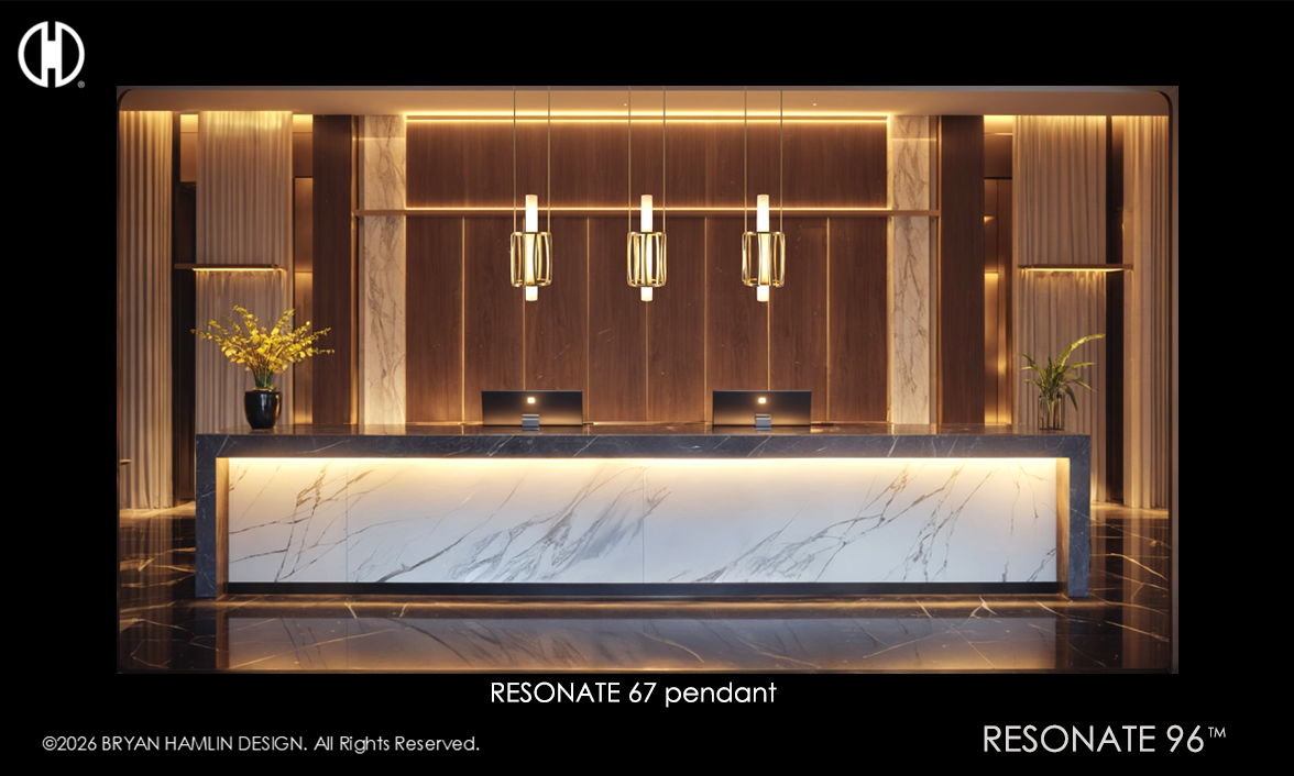 Geometry from my BRYAN HAMLIN DESIGN Trademark can be found within the detailing of the fixtures.