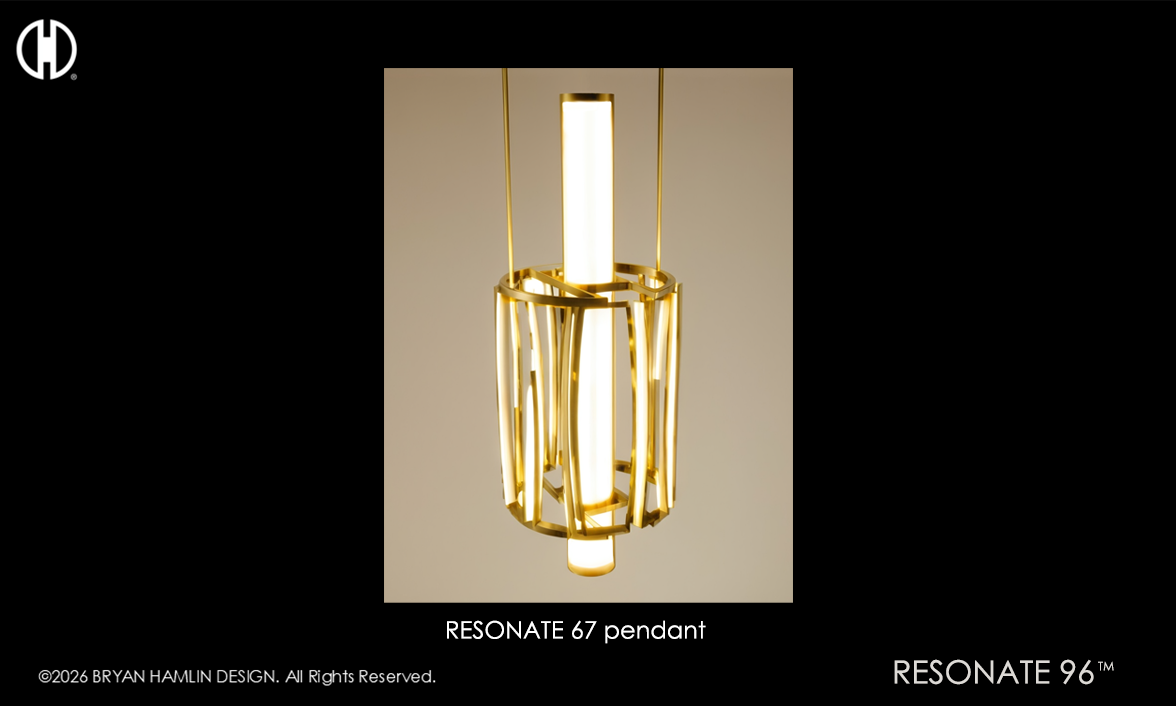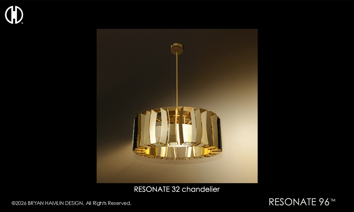 Inspired by adjacency radial patterns of radio, tube, and broadcasting equipment engineering, RESONATE transforms these cold mechanized forms into warm and inviting fixture designs.
